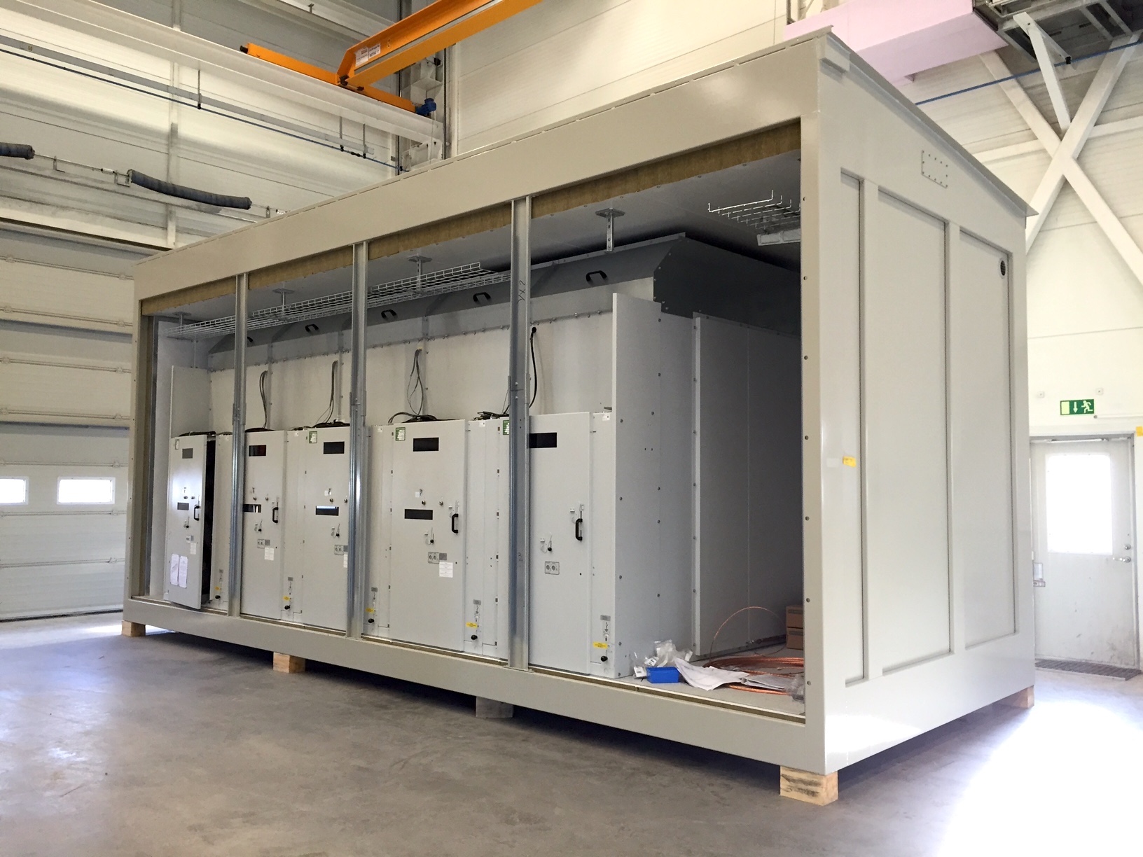 De kan leveres fuldt udstyret med el-installationer, switchgear, tavler og eventuelt toilet, i én eller to bygninger, der samles on-site.