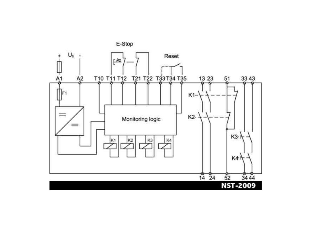Universelt anvendeligt sikkerhedsrelæ, som opfylder det højeste sikkerhedsniveau. Mulighed for overvåget reset og forsinket udgang.