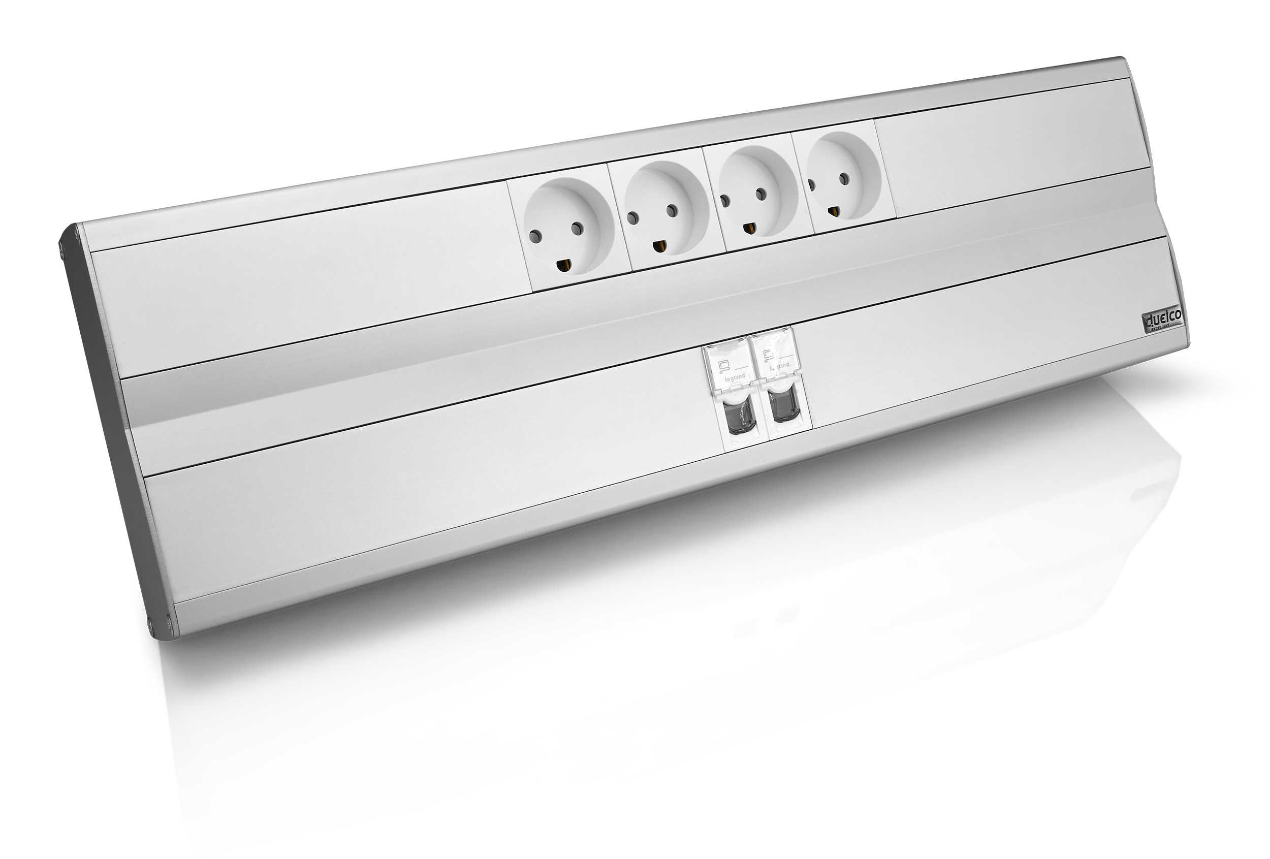 Duelcos installationskanaler i aluminium kan som standard leveres i 1- og 2-sporet kanaler i eloxeret overflade, hvorved man skal huske, at stærkstrøms- og signalkabler altid skal være adskilt. Leveres som standard i 6 meters længde.