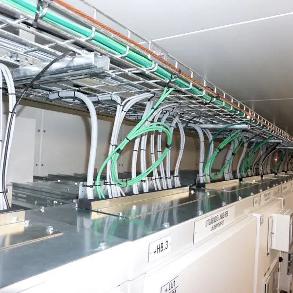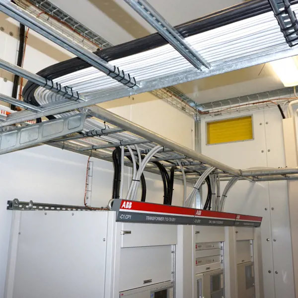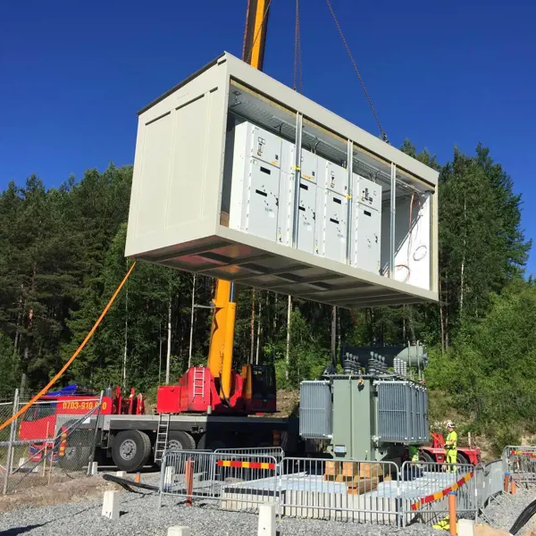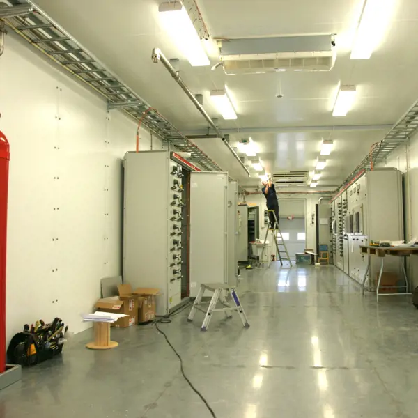 They can be delivered fully equipped with electrical installations, switchgear, panels and possibly a toilet, in one or two buildings that are assembled on-site.