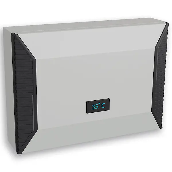 The functional principle of an air-to-air heat exchanger is quite simple: The heat exchanger core transfers heat from the internal circuit to the external circuit through an aluminum surface, so there is no direct contact or mixing between internal and external air.