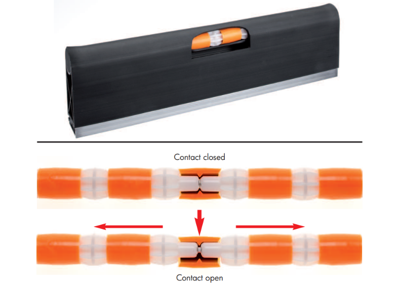 Haake safety edges are based on the highly efficient and reliable principle of normally closed contacts (NC), which do not require a special control unit.