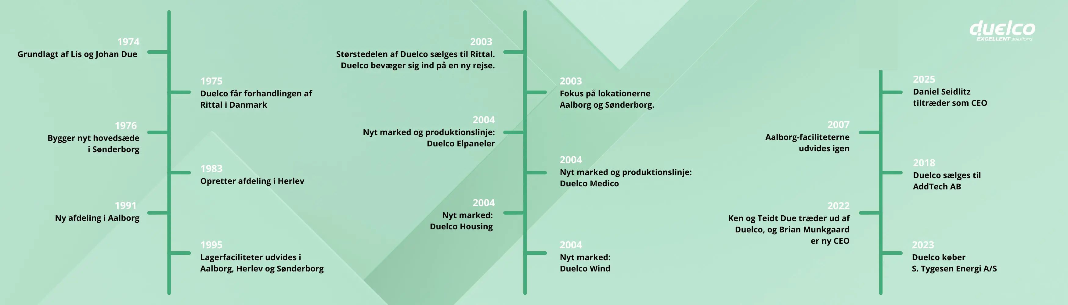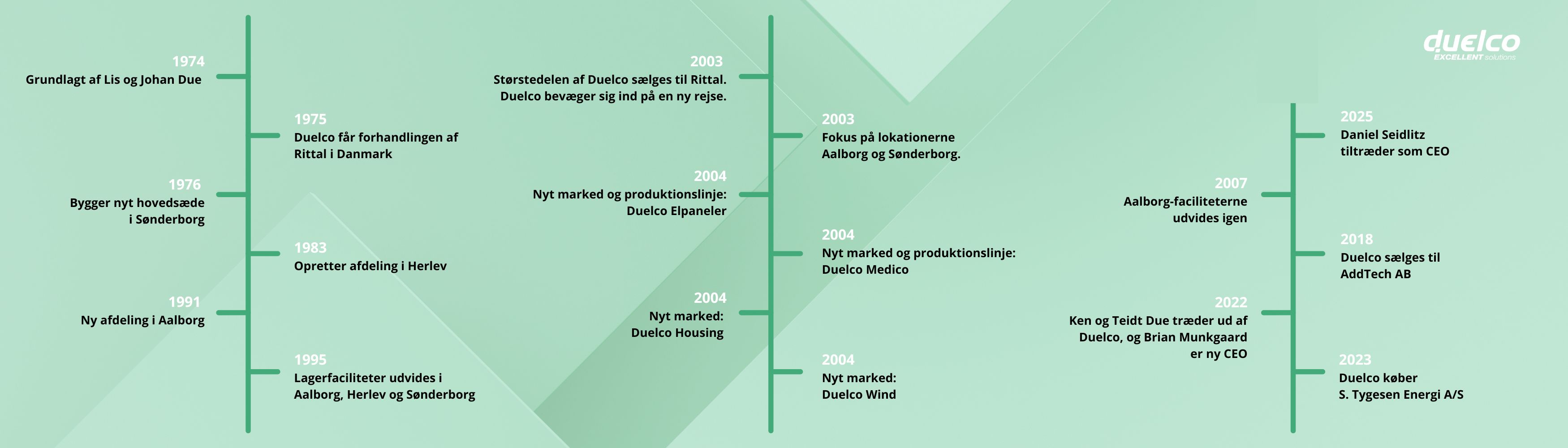 Hvad der begyndte som en god idé og målsætning om at være den foretrukne handelspartner og leverandør af produkter og tekniske løsninger inden for el- og automationsudstyr, har udviklet sig til et solidt fundament for Duelco.